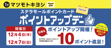 【マツモトキヨシ】12/4(木)~12/7(日) ステラモールポイント『10倍』!