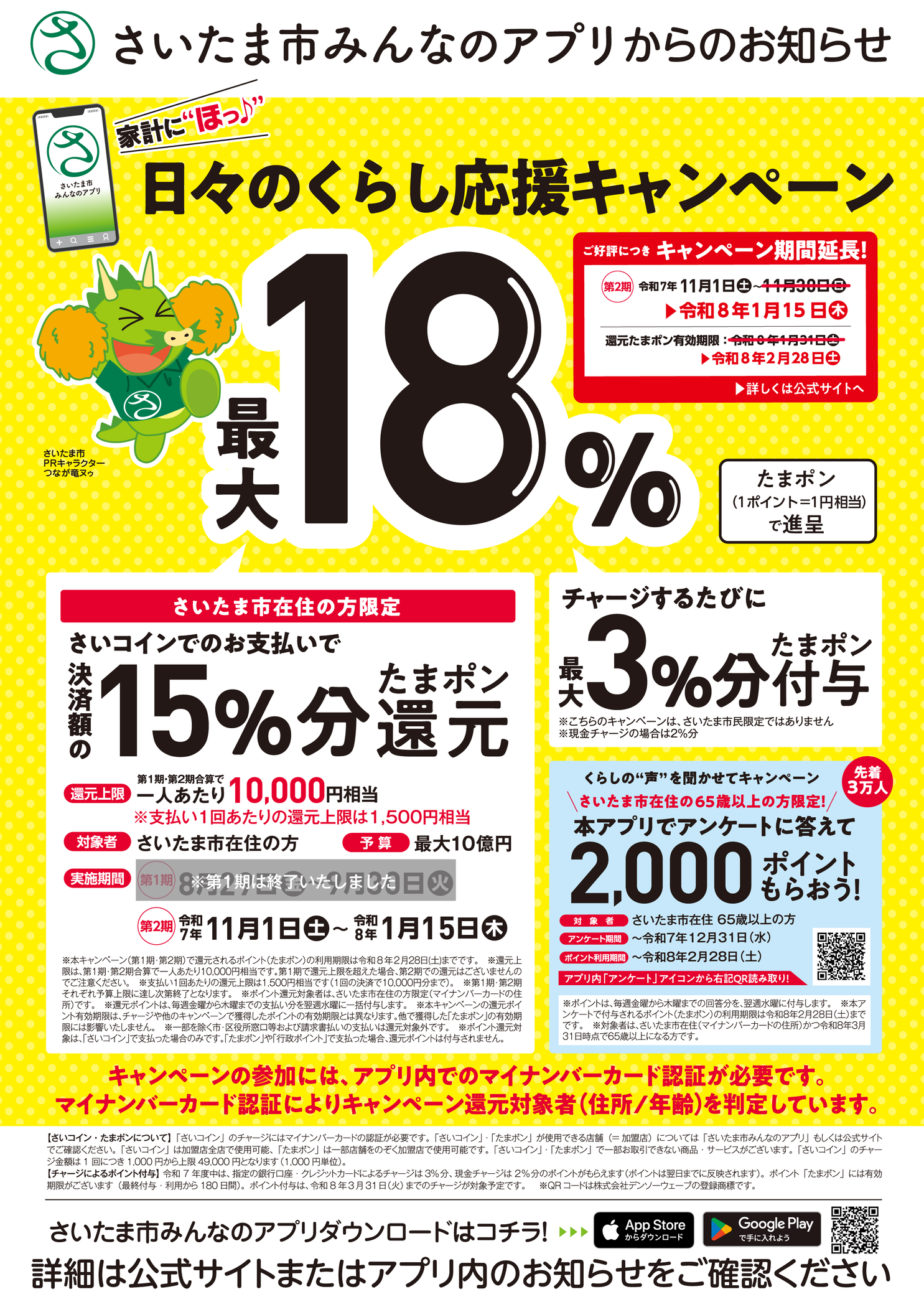 - 令和7年11月1日(土)~令和8年1月15日(木)「家計に”ほっ♪”日々のくらし応援キャンペーン」