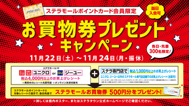 - 【ステラモールポイントカード会員限定】お買い物券プレゼントキャンペーン!