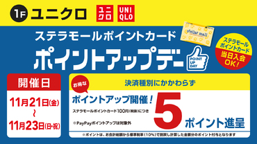 - 【ユニクロ】11/21(金)~11/23(日・祝) ステラモールポイント5倍!
