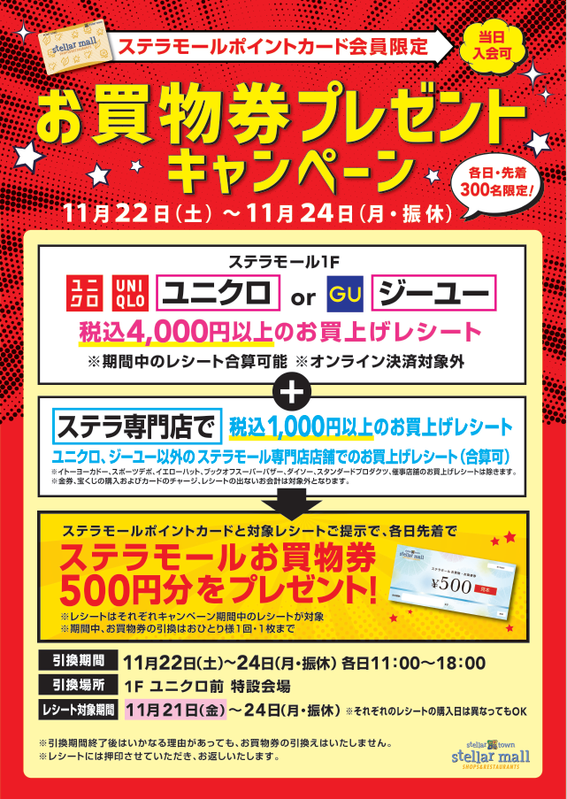 - 【ステラモールポイントカード会員限定】お買い物券プレゼントキャンペーン!