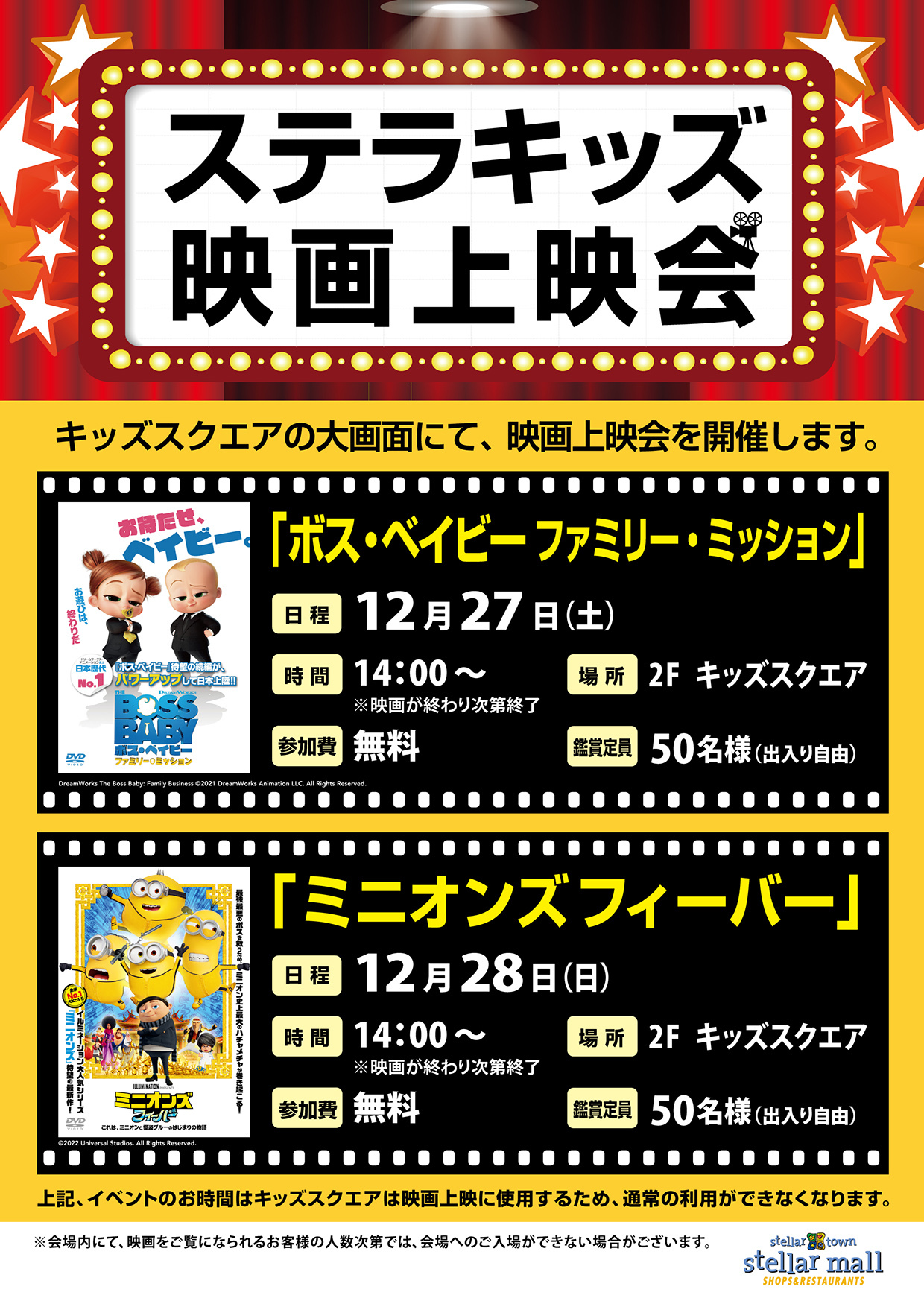 - 12/27(土)・12/28(日) キッズ映画 上映!