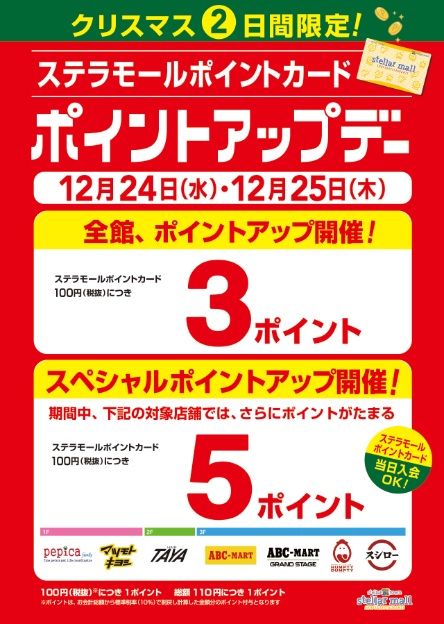 12/24(水)・12/25(木)のクリスマス2日間限定で全館3ポイントアップを開催!