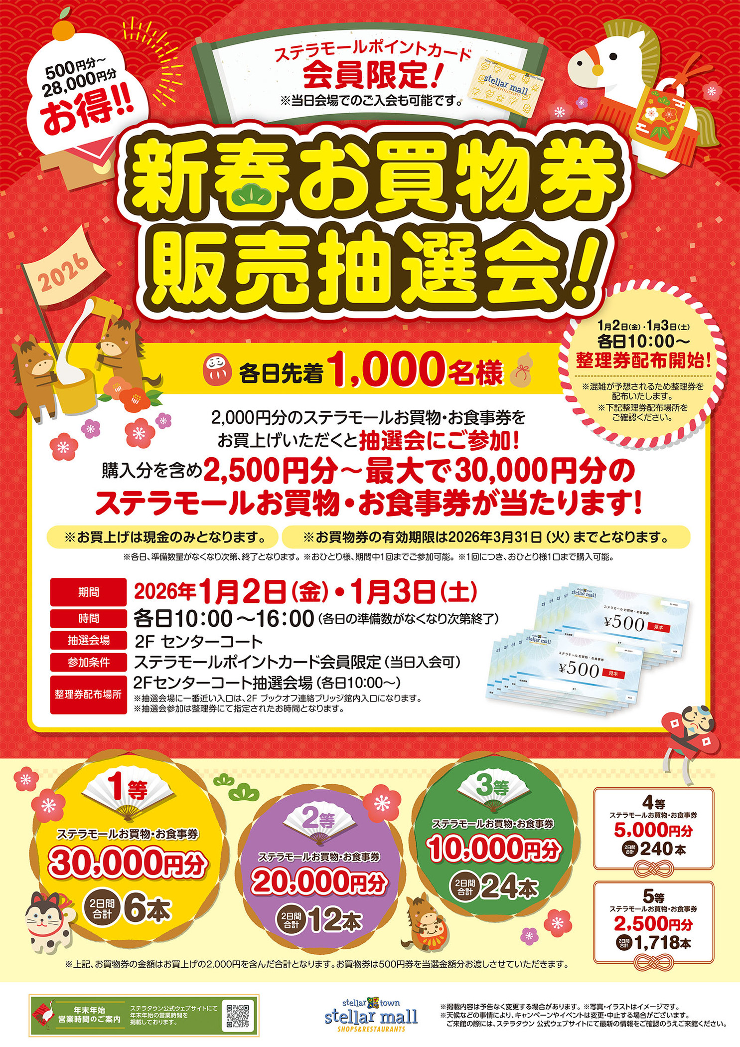 - 1/2(金)・1/3(土)「新春お買物券販売抽選会」開催!