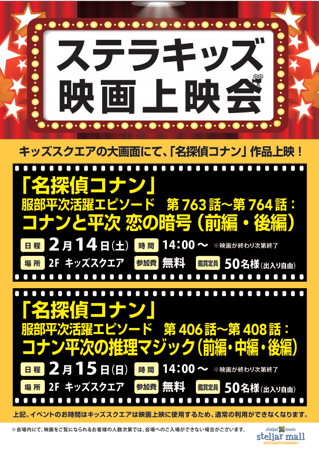- 2/14(土)・2/15(日) キッズ映画 「名探偵コナン」作品 上映!