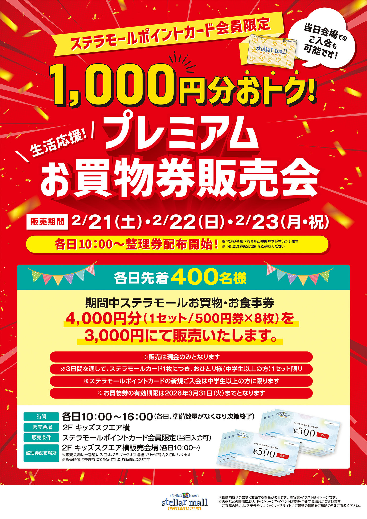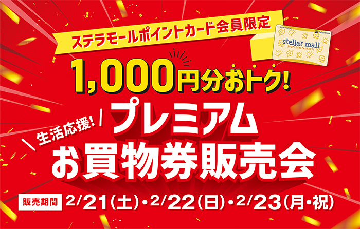 - 2/20(金)・2/21(土)・2/23(月祝) プレミアムお買物券販売会 開催!