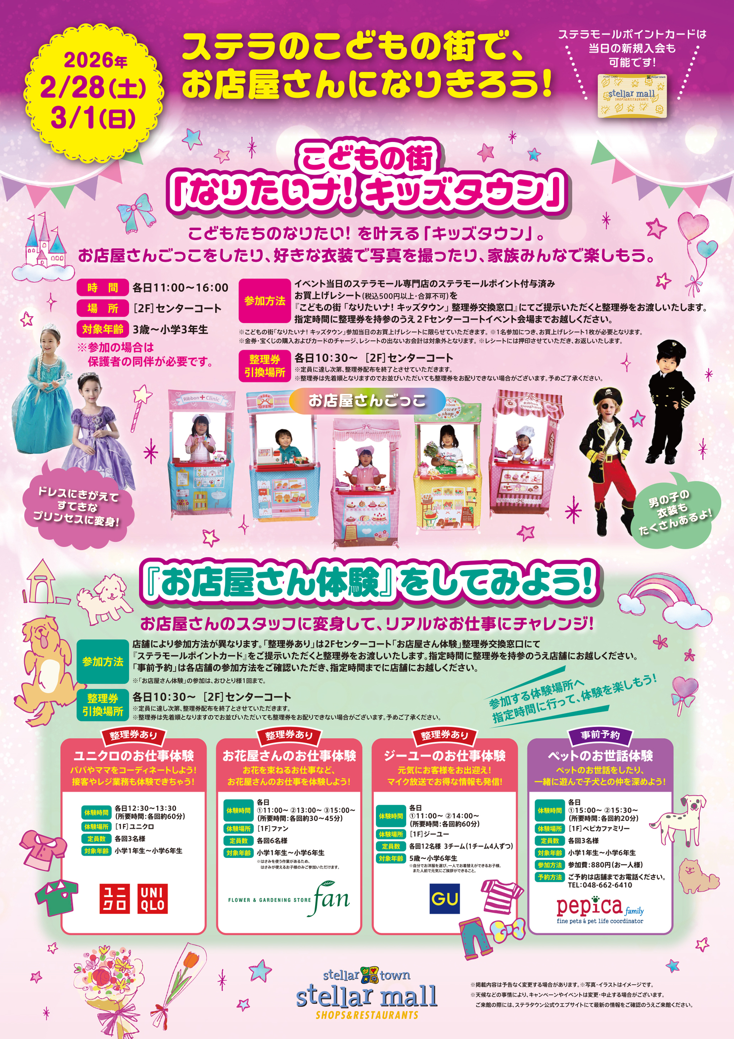- 2/28(土)・3/1(日) ステラのこどもの街で、お店屋さんになりきろう!