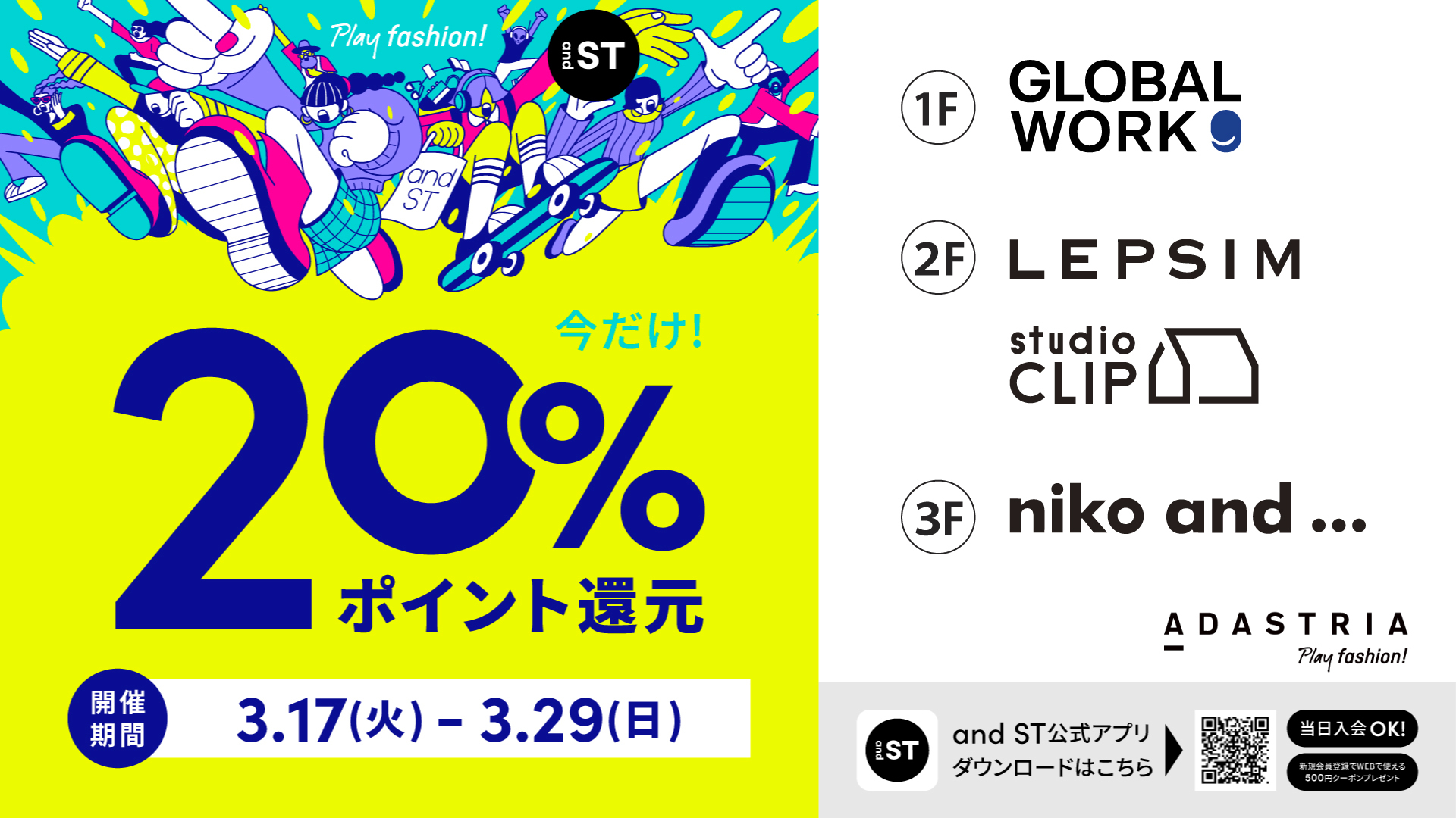 3/17(火)~3/29(日) and ST「今だけ!20%ポイント還元」