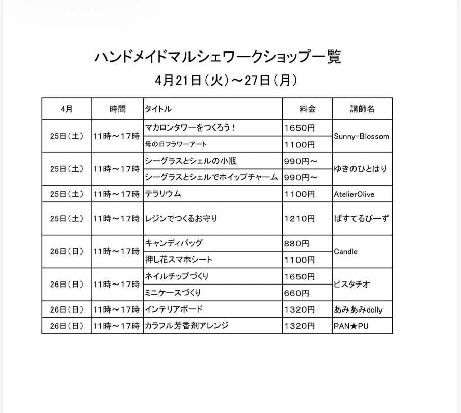 - ハンドメイドマルシェ 期間限定オープン!
