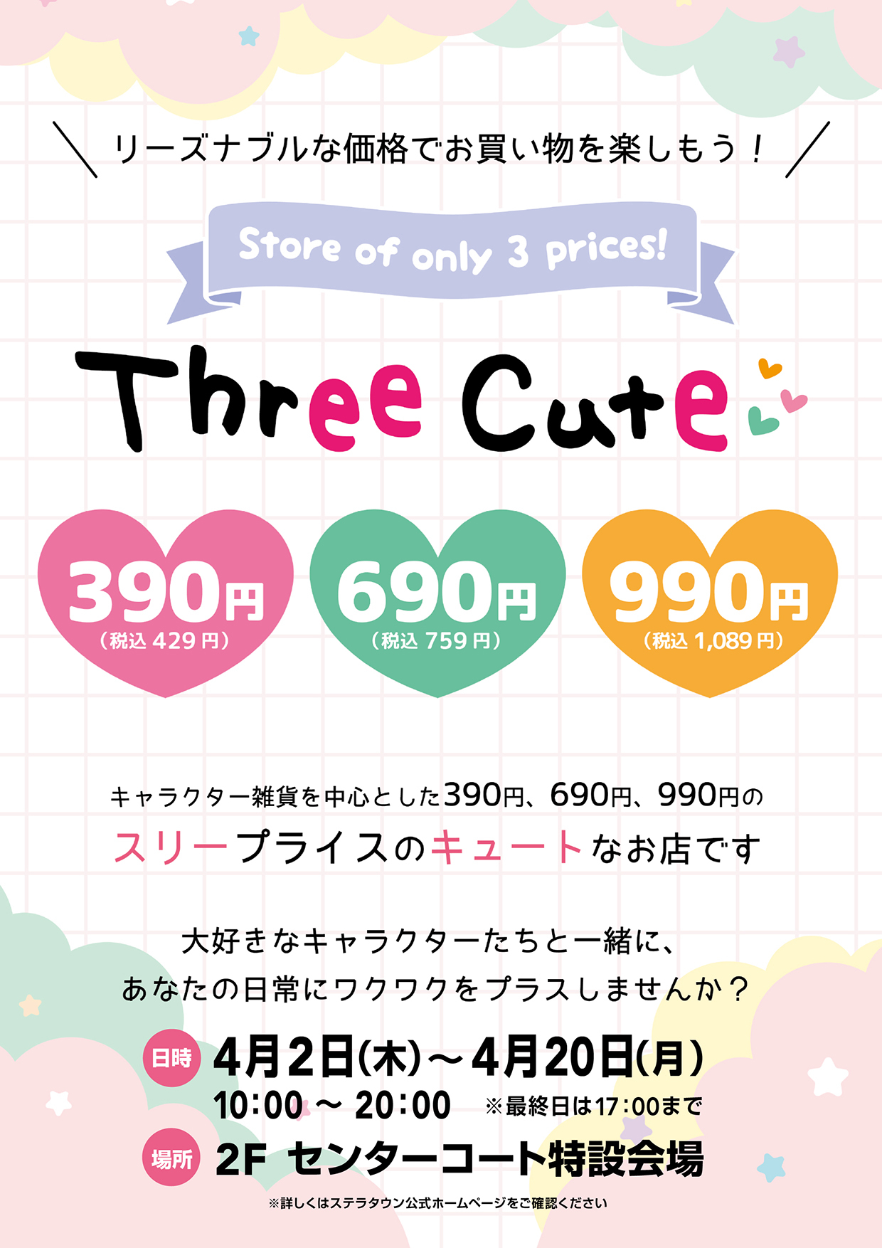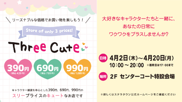 - 4/2(木)~4/20(月) 「スリーキュート」期間限定オープン!