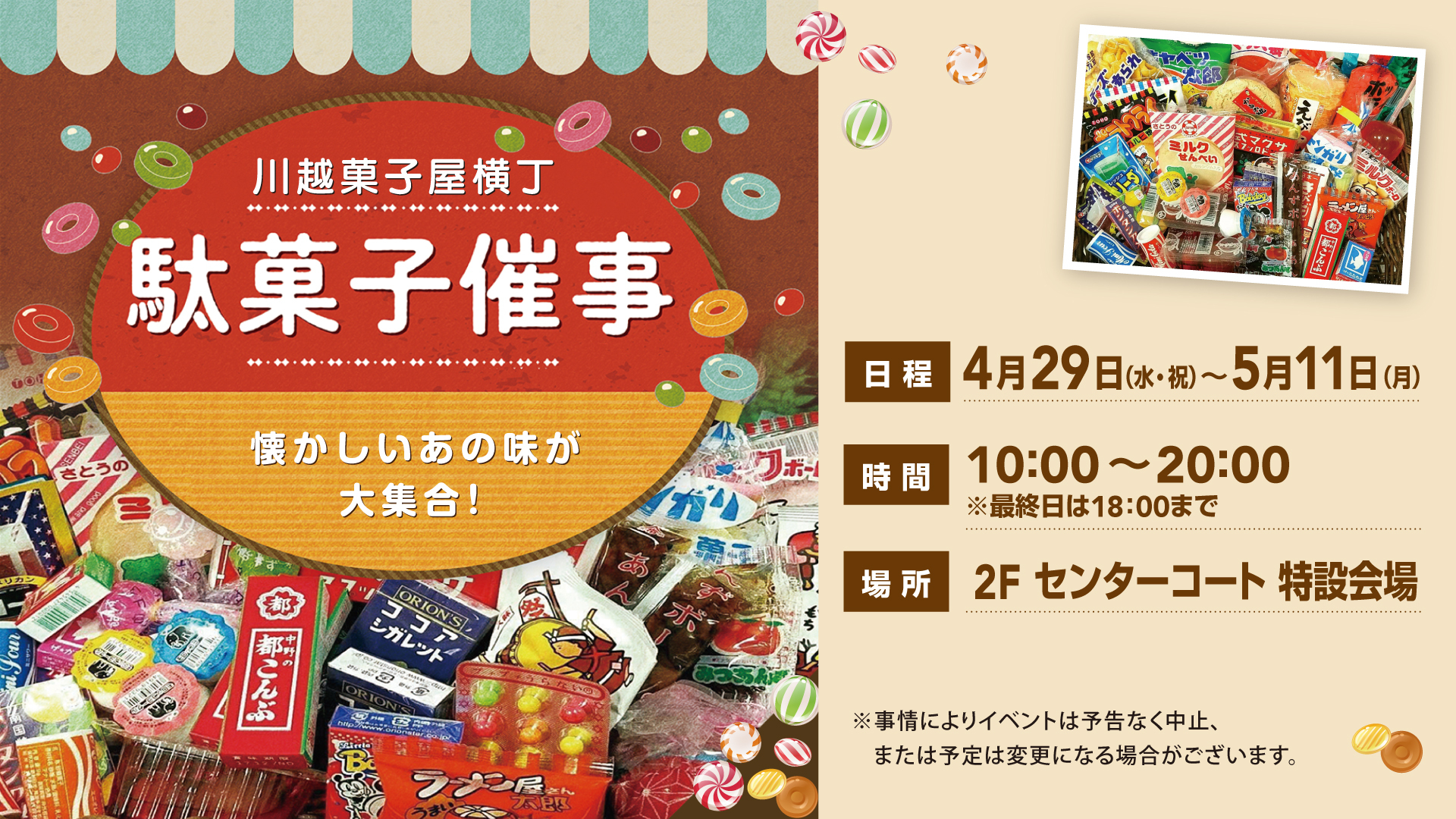 4/29(水・祝)~5/11(月) 「川越菓子屋横丁 駄菓子催事」期間限定オープン!