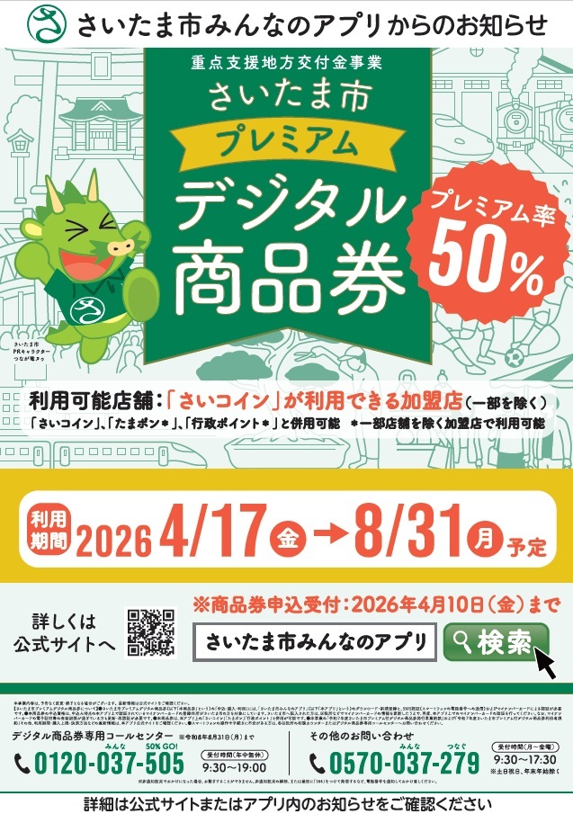 「さいたま市みんなのアプリ」「さいコイン/たまポン」についての詳細はこちら↓