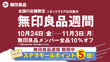 【無印良品】良品週間 開催! ステラモールポイント5倍!
