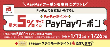 PayPayポイント最大5%戻ってくるクーポン発行中!