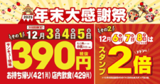 - 【 銀だこ たこ焼1舟390(サンキュー)価格!!】1年の感謝を込めた 『年末大感謝祭』 12/3(水)より開催!