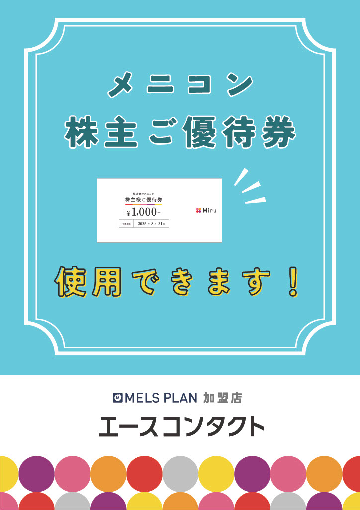 エースコンタクトでは 『メニコン株主ご優待券』 が使用できます。