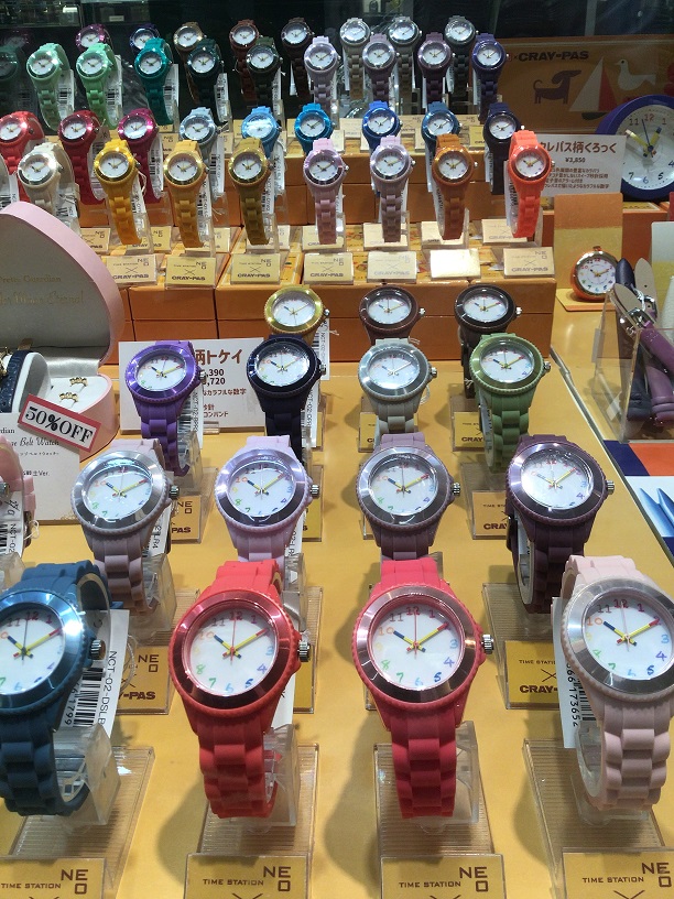 色とりどりで大人かわいい「クレパス柄トケイ」。