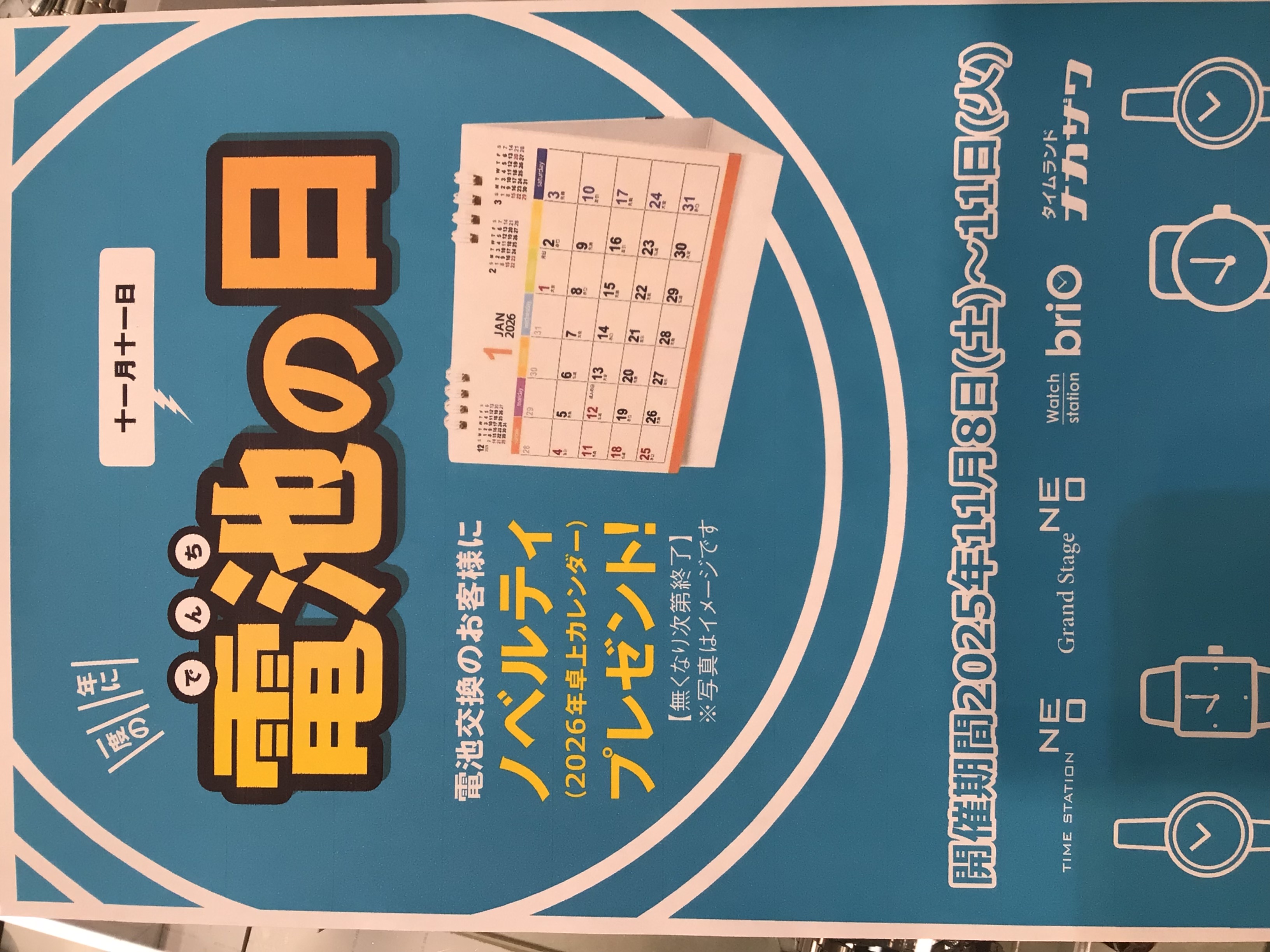店頭で腕時計の電池交換をすると、次回店頭での電池交換時に使えるクーポンを配布する「電池の日」特別企画を4日間限定で開催
