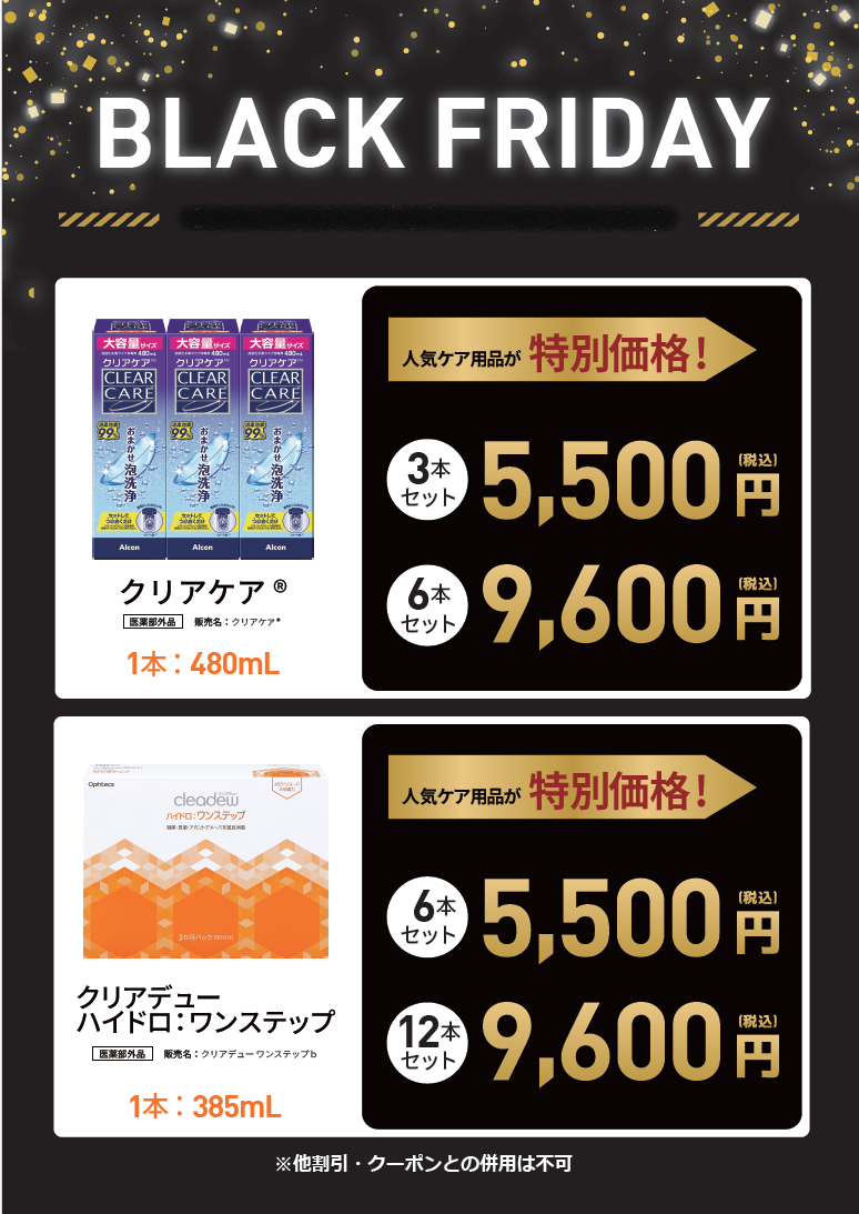 - ブラックフライデー コンタクトレンズ洗浄液セール