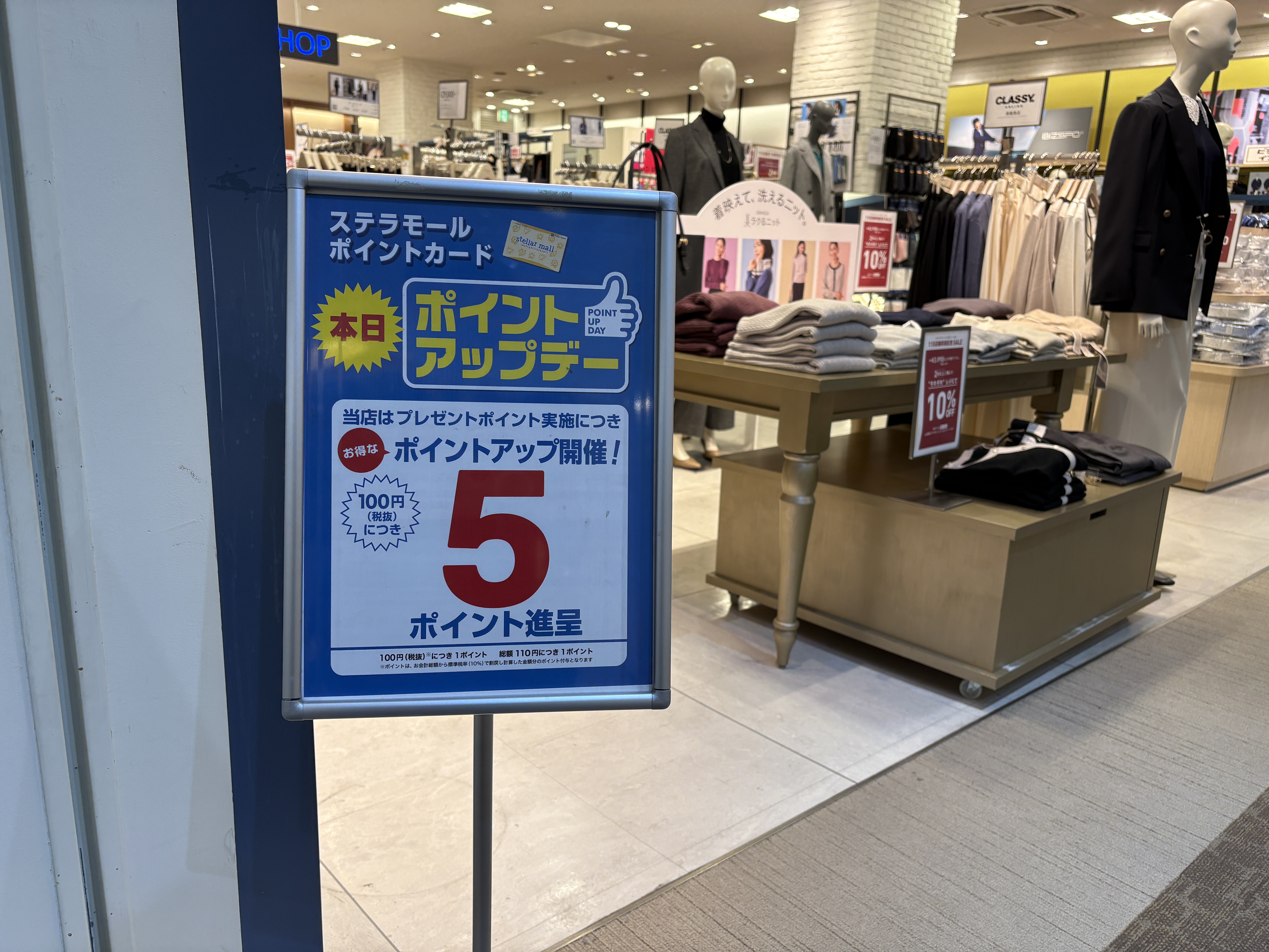 また11月9日(日)まではステラモールポイント5ポイント進呈のポイントアップデーとなっております。
