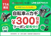 サイクルスポットでは、11月の間にLINEのお友達登録をしていただく事で