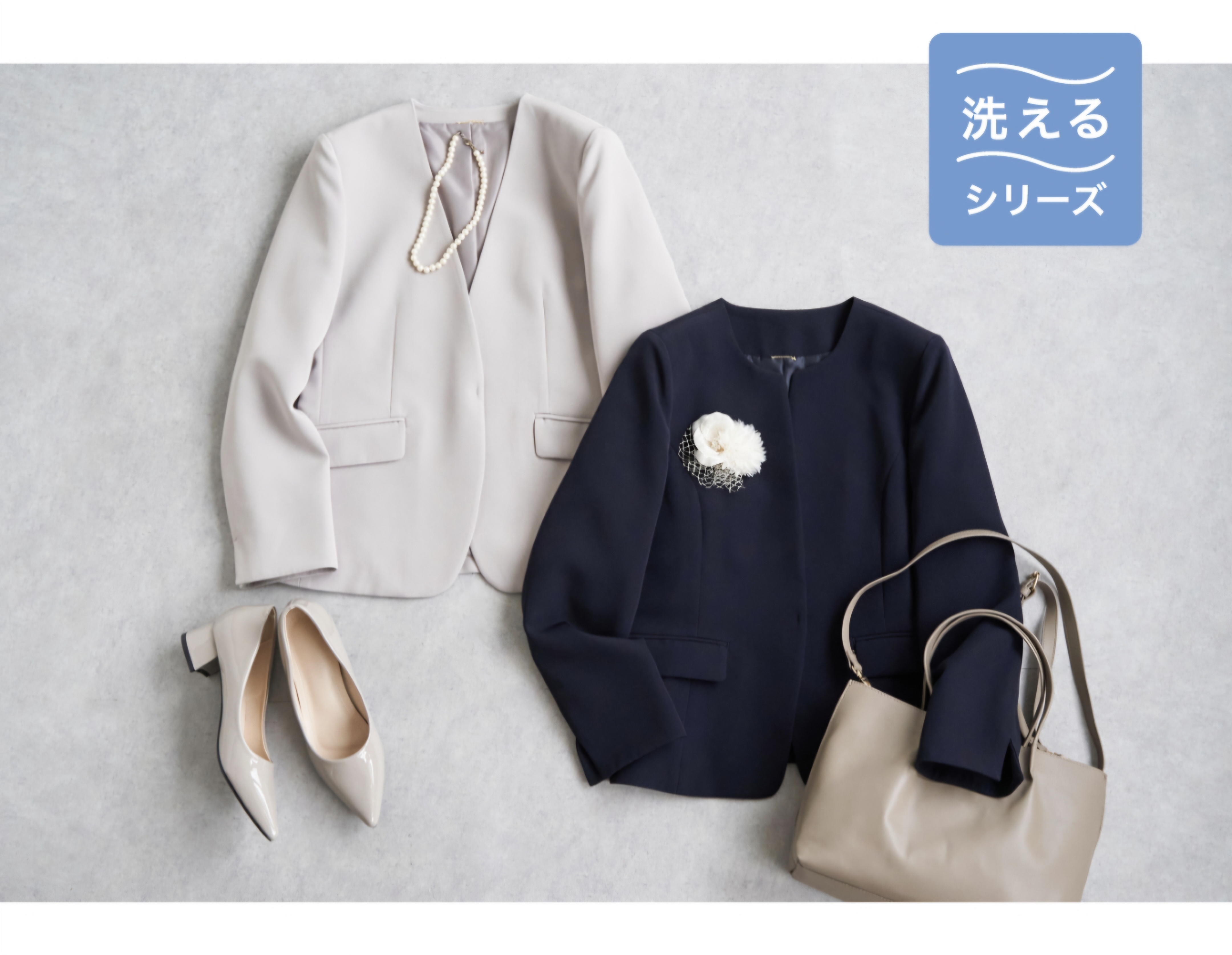 上下ともに洗濯機OKで自宅で洗えるイージーケアアイテムなので、ハレノヒ以外にも通勤など日常でも使いやすい万能アイテムです。