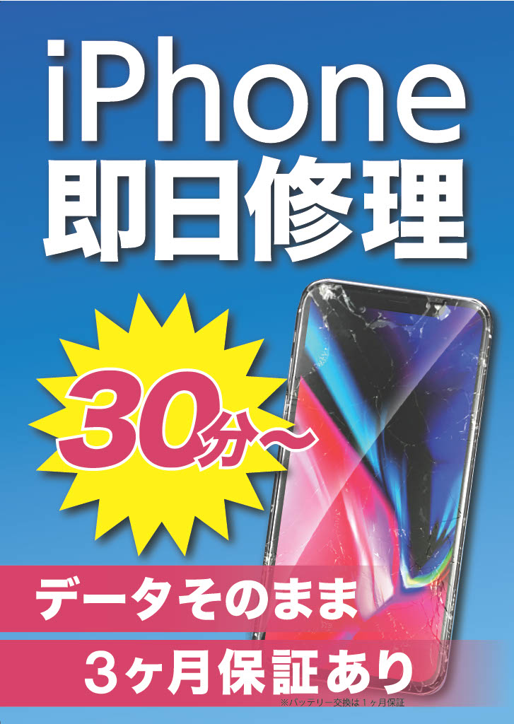 バッテリー交換は30分~、画面交換は60分~