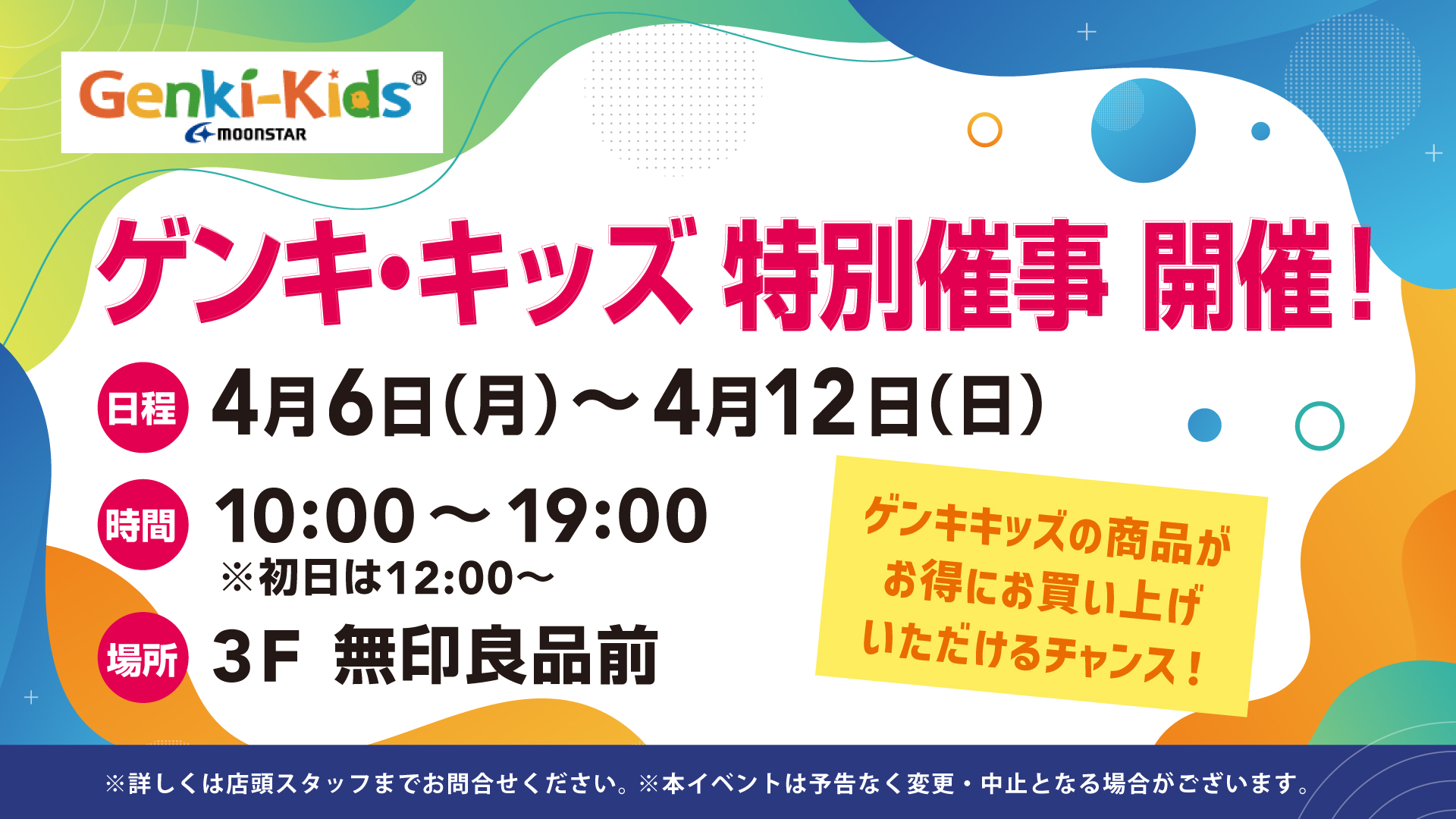 4/6(月)~12(日)まで『ゲンキ・キッズ特別催事』を開催中です。