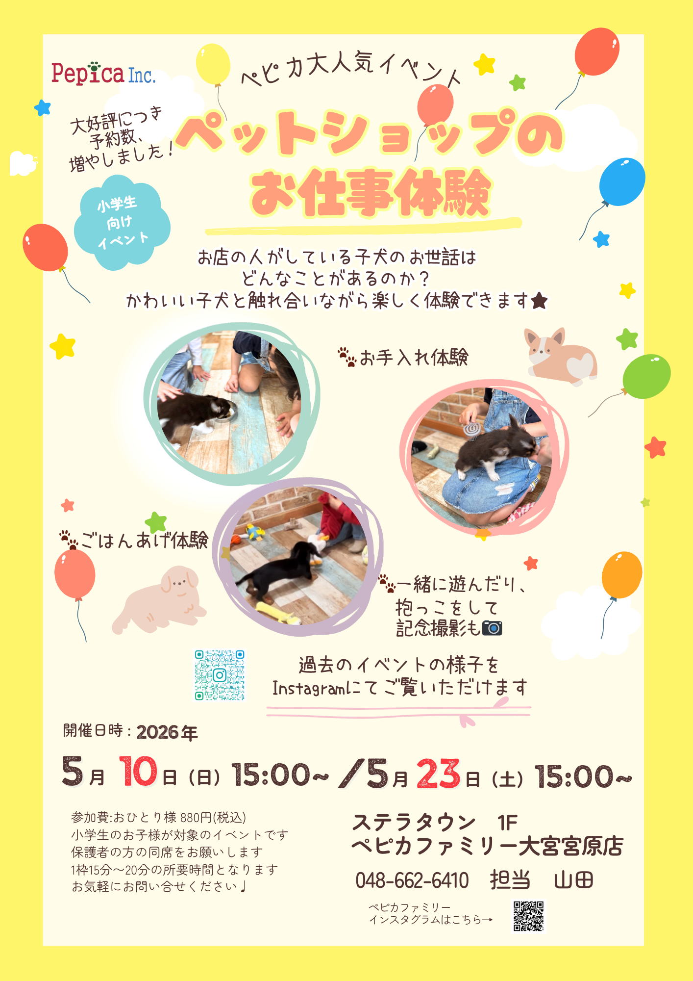 - ペットショップのお仕事体験会、ご予約受付中★