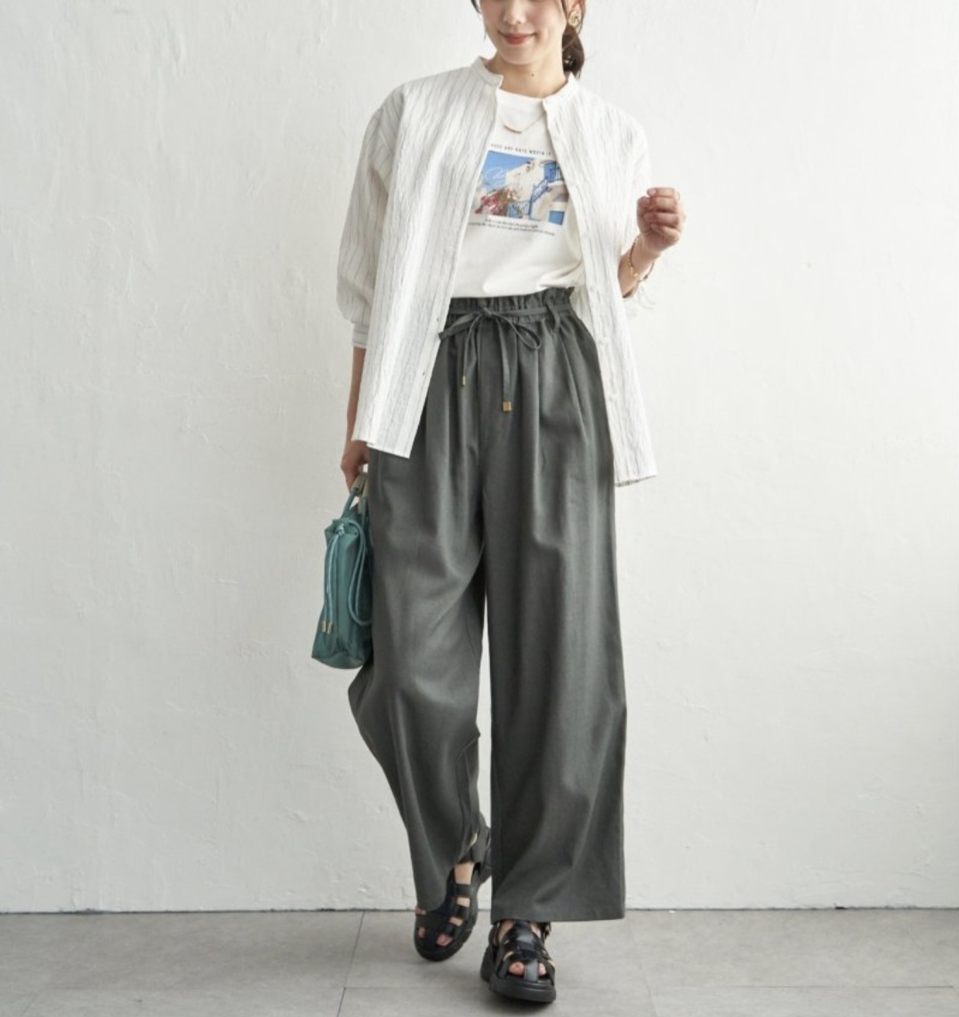 透け感が今年らしいシアーブラウスに、トレンドのシアーレイヤードトップスを合わせた着こなし♪