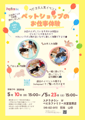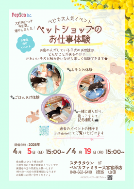 ペットショップのお仕事体験会、ご予約受付中★